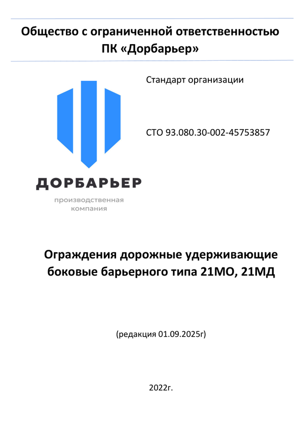 Ограждения дорожные удерживающие боковые барьерного типа 21МО, 21МД